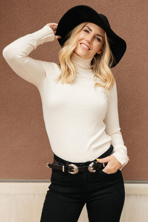 Button Sleeve Elegance Turtleneck Sweater In Ivory
