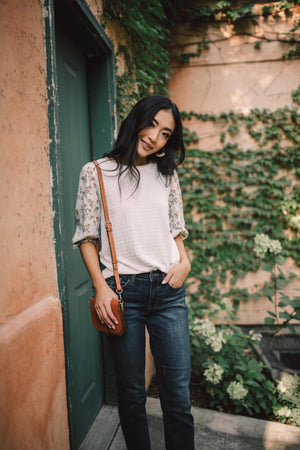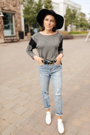 Home Base Contrast Long Sleeve Top In Heather Gray