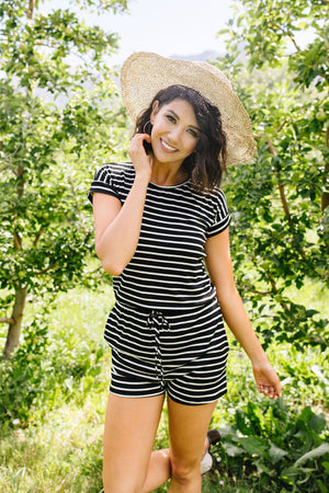 Lounge Town Striped Romper In Black